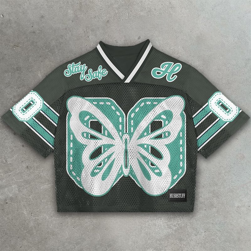 Vintage Liberty Butterfly Graphics Blokette Blokecore Jerseychic V-Neck T-Shirt