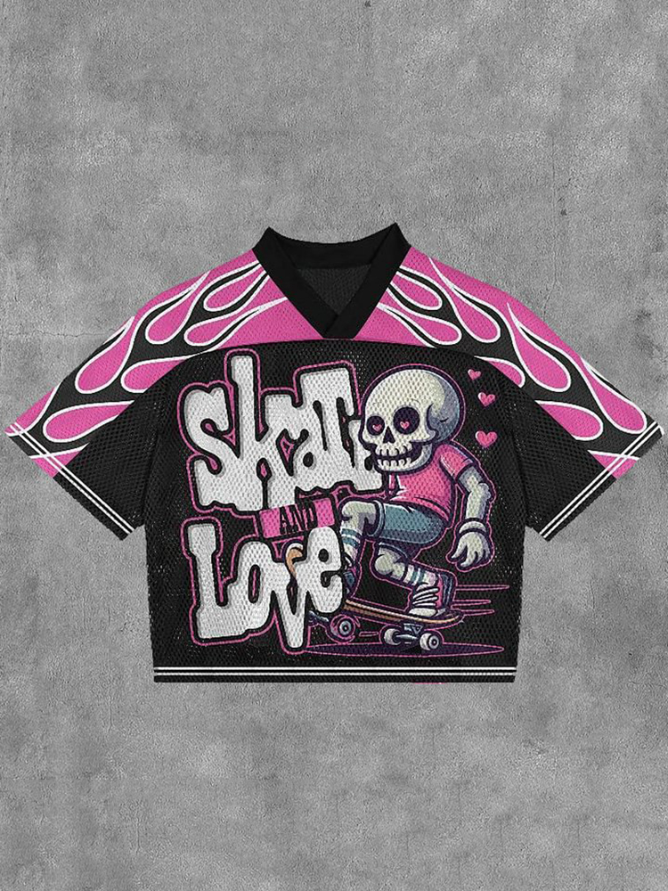 Vintage No 3 Flame Graphics Blokette Blokecore Jersey V-Neck T-Shirt