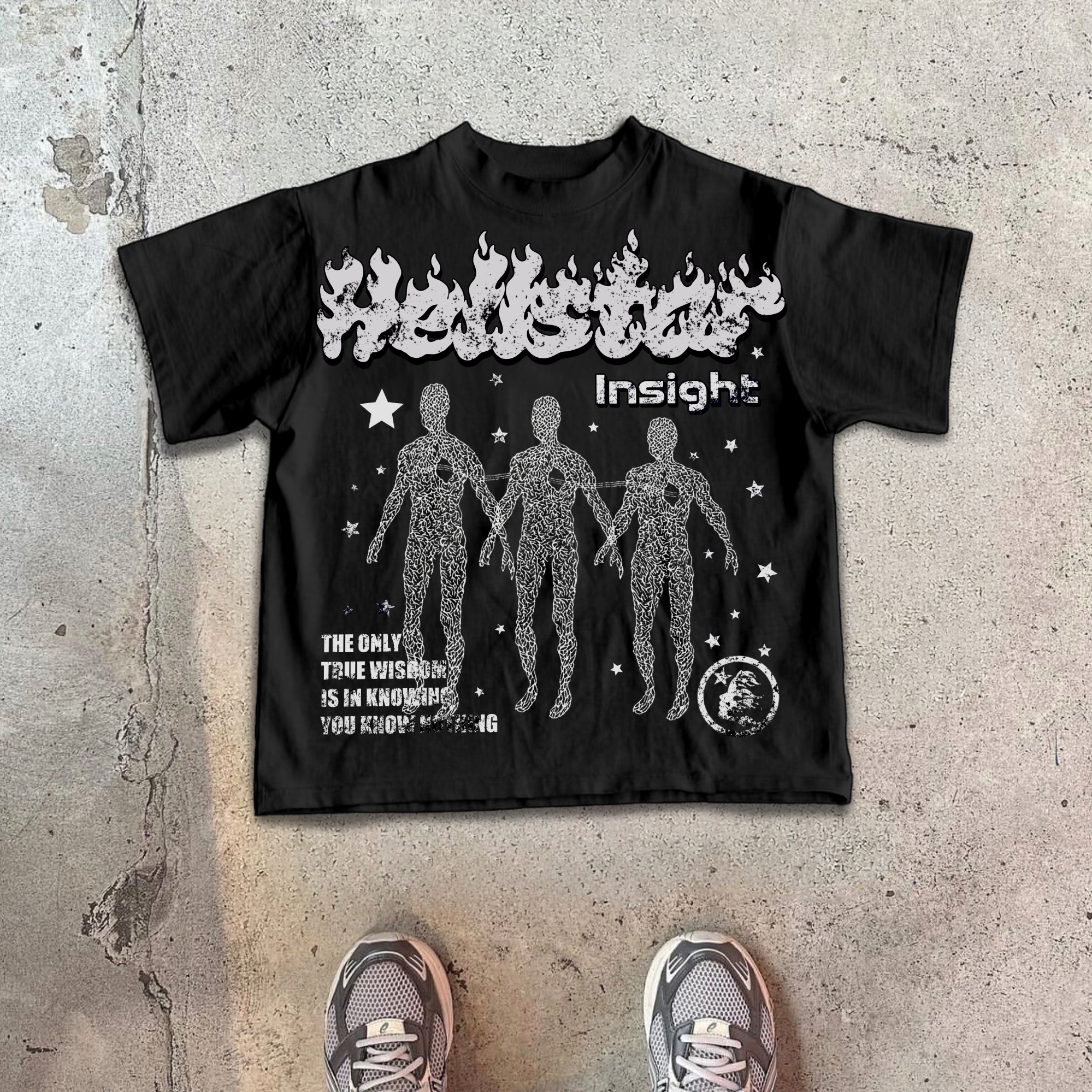 Casual Insight of the Wise - Vintage Pattern Print Cotton T-Shirt