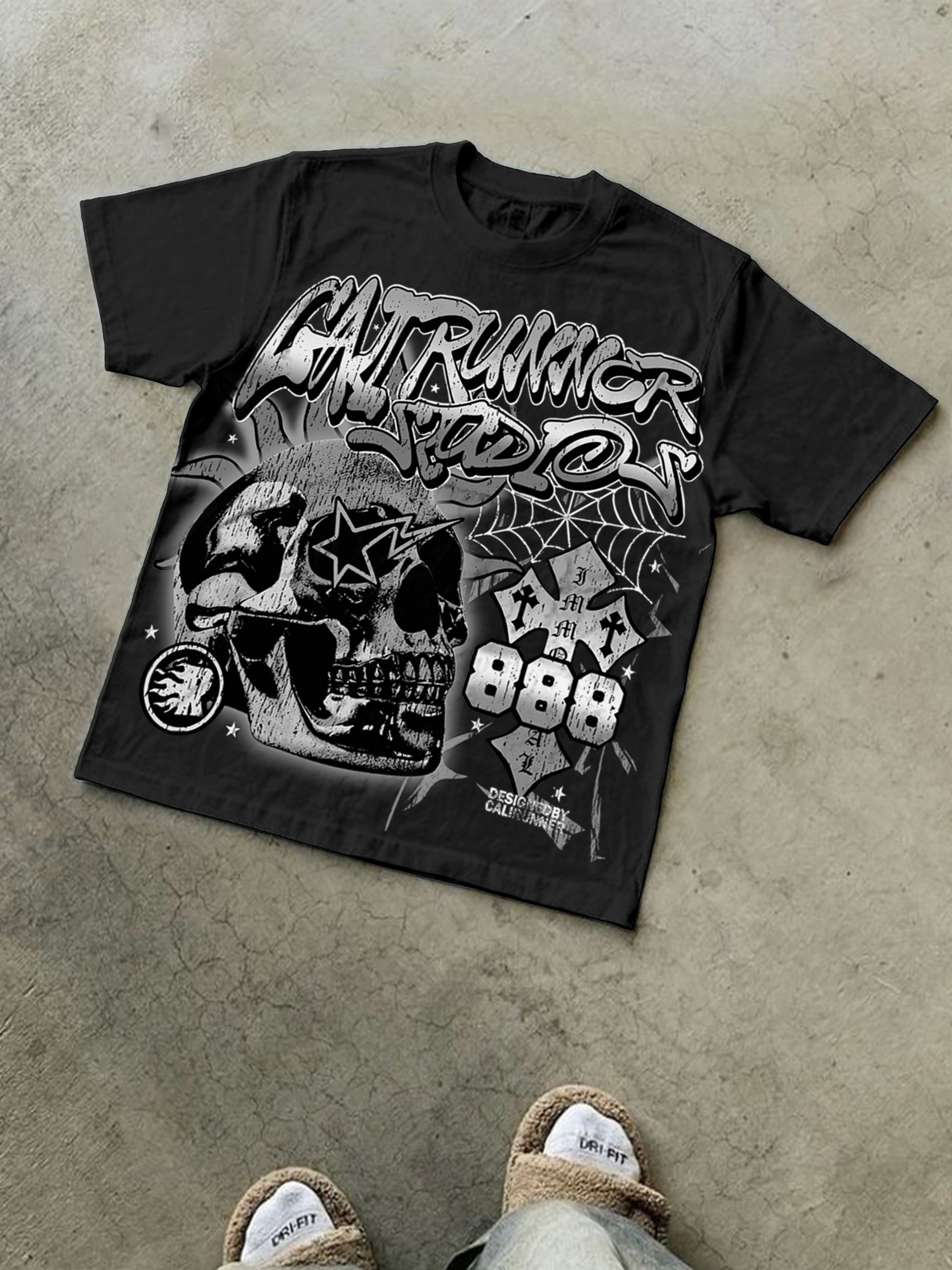 Flame Abstract Skull Graphics Cotton Hellstar T-Shirt