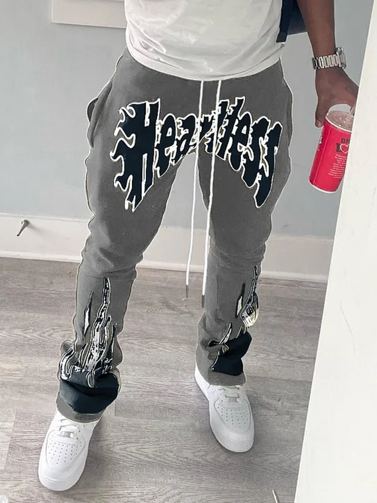 Men's Vintage Heartless Graphic Gray Flared Sweatpants