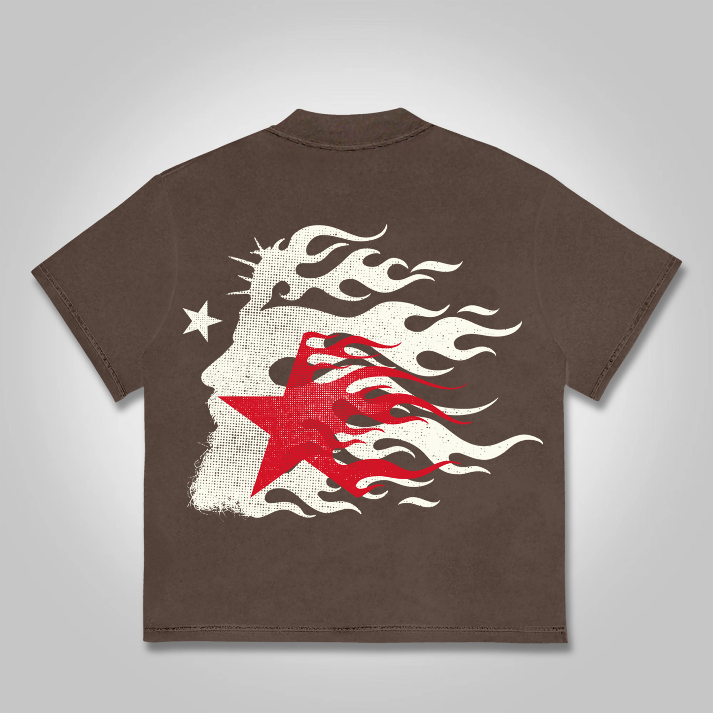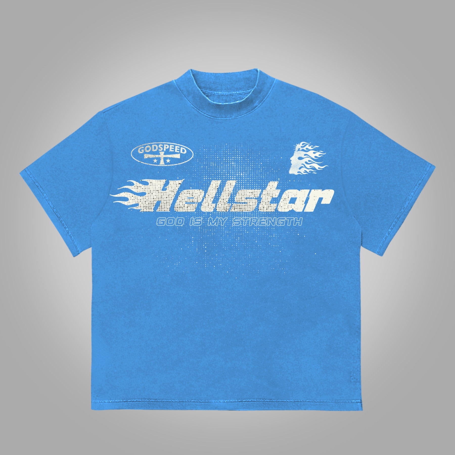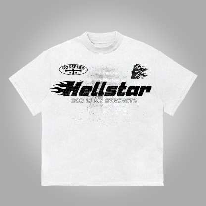 Hellstar Flame Jesus Silhouette Network Vintage Graphics Cotton T-Shirt