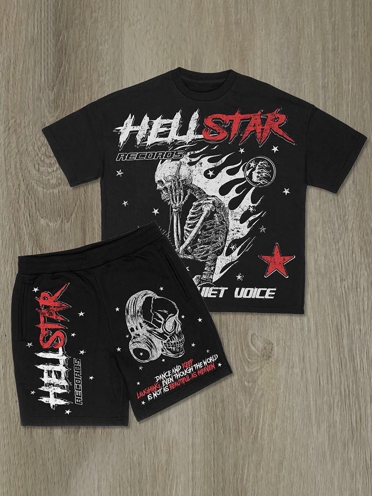 Hellstar Skull Casual Street Shorts T-Shirt Two-Piece Set