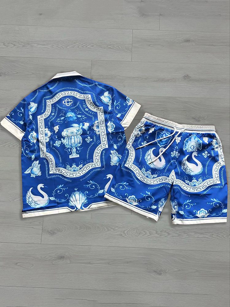 Holiday Swan Graphics Art Print Street Shirt And Shorts Co-ord