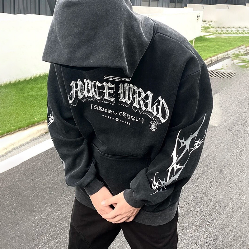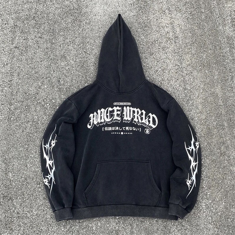 Juice Wrld Print Graphic Black Pullover Hoodie