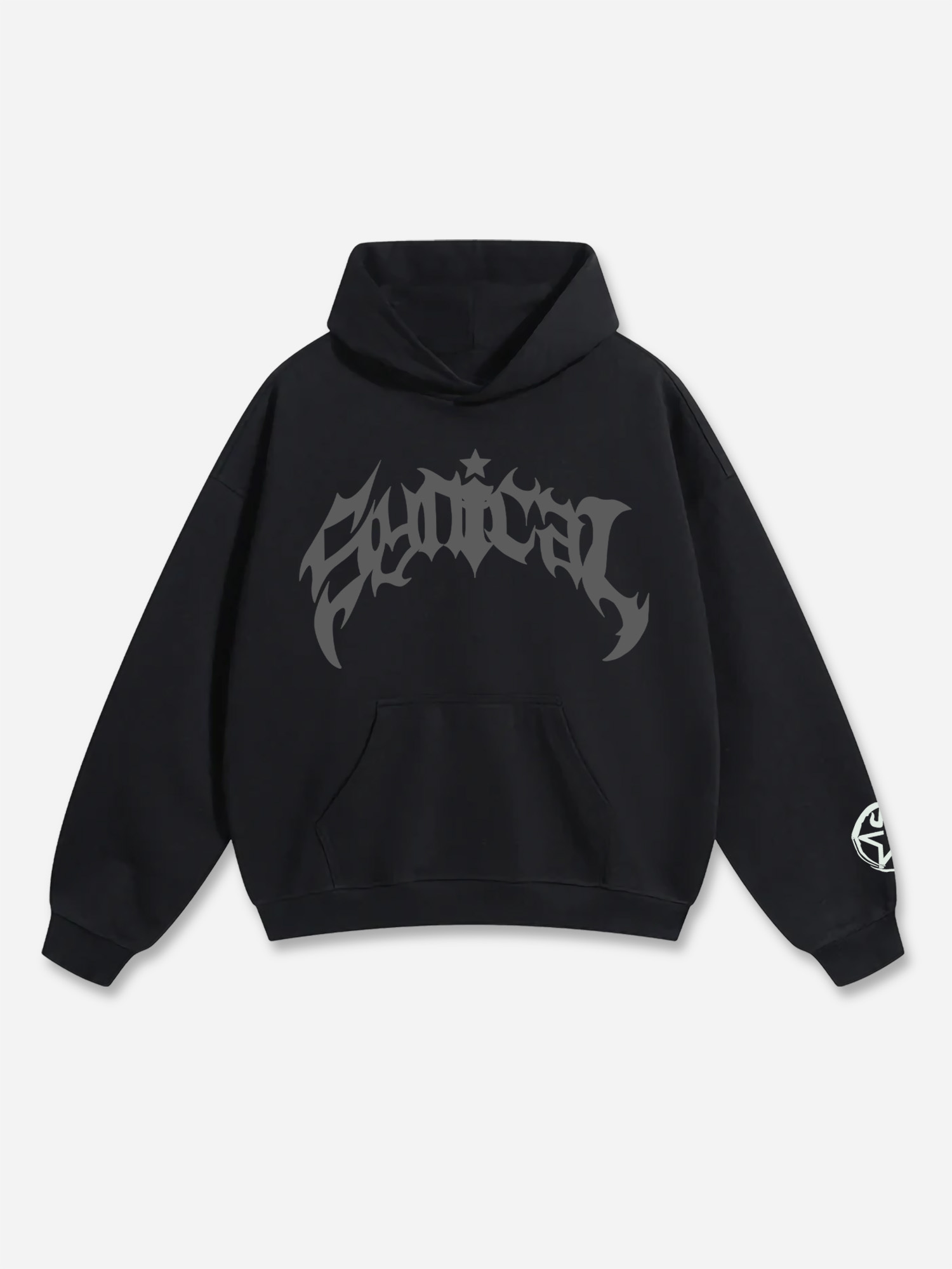 Puff Print Monochrome Pocket Long Sleeves Hoodie