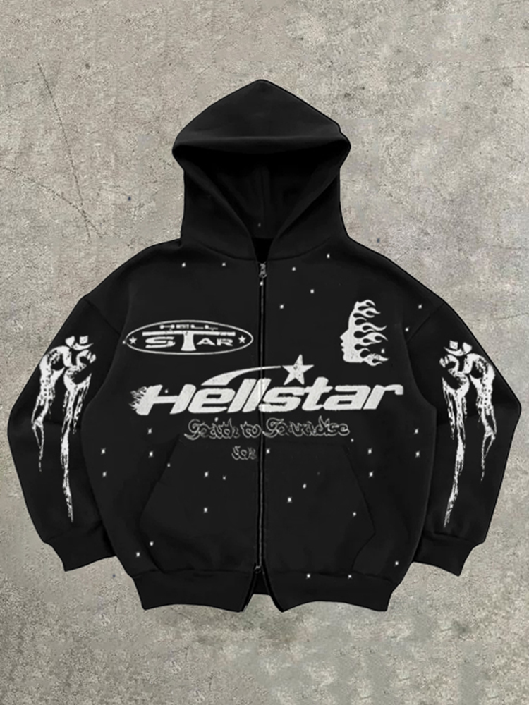 Relaxed Vintage Unisex Fashion Street Hip Hop Oversized Zip Up Hoodie