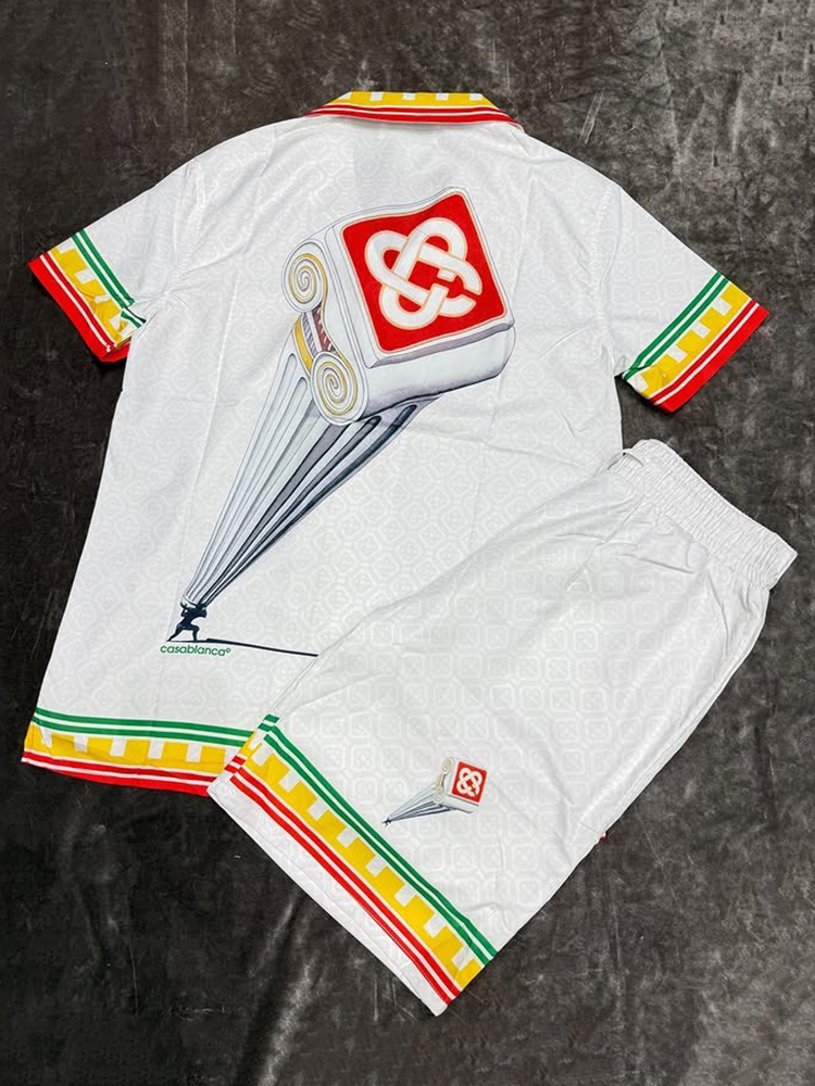 Retro Casa Roman Column Print Street Shirt And Shorts Co-ord