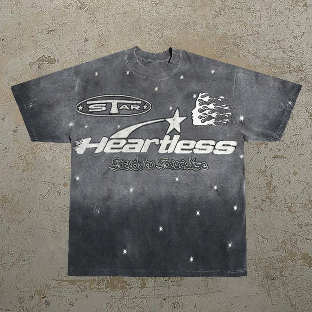 Retro Fashion Heartless Graphic Acid Washed Short Sleeve T-Shirt