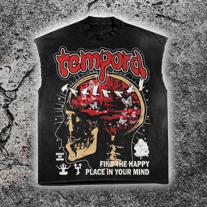 Retro Street Skull Graphic Acid Wash Sleeveless Tank Top