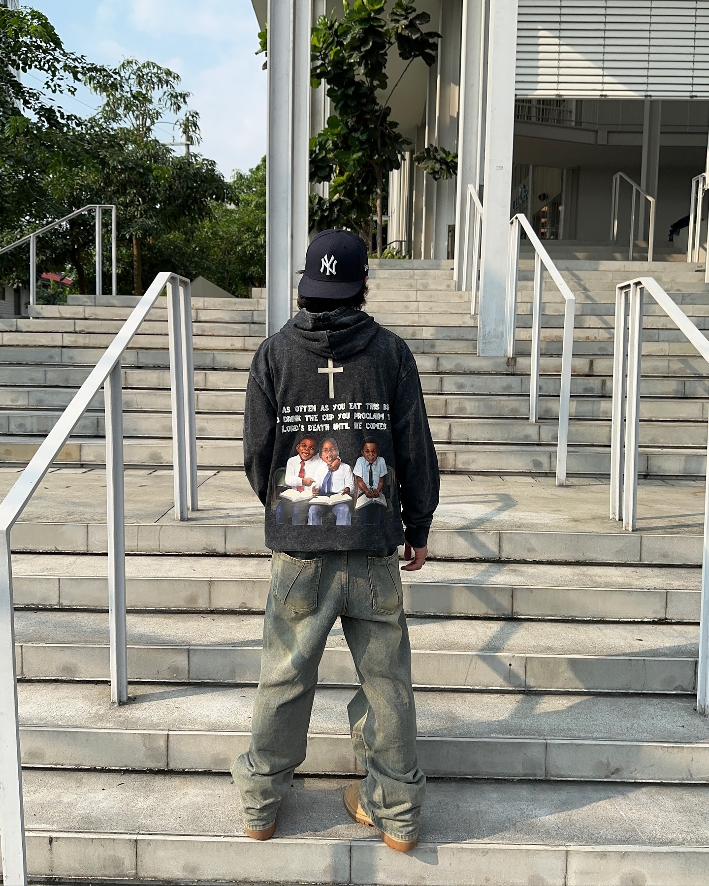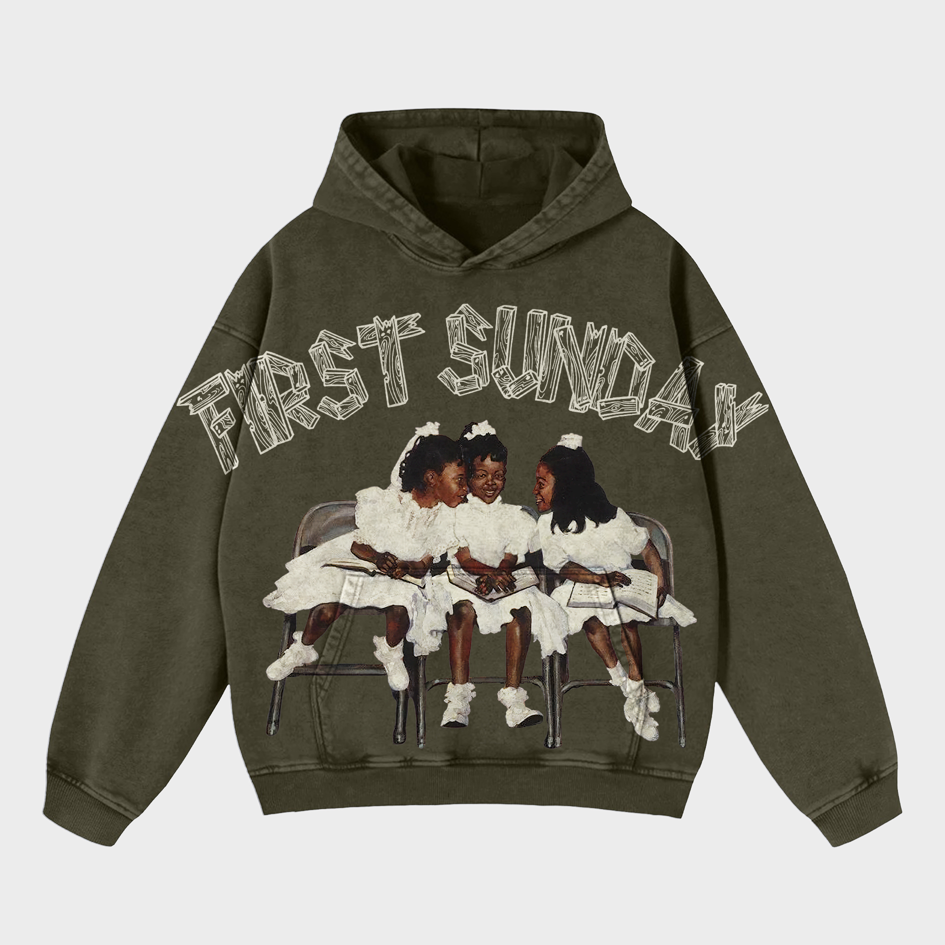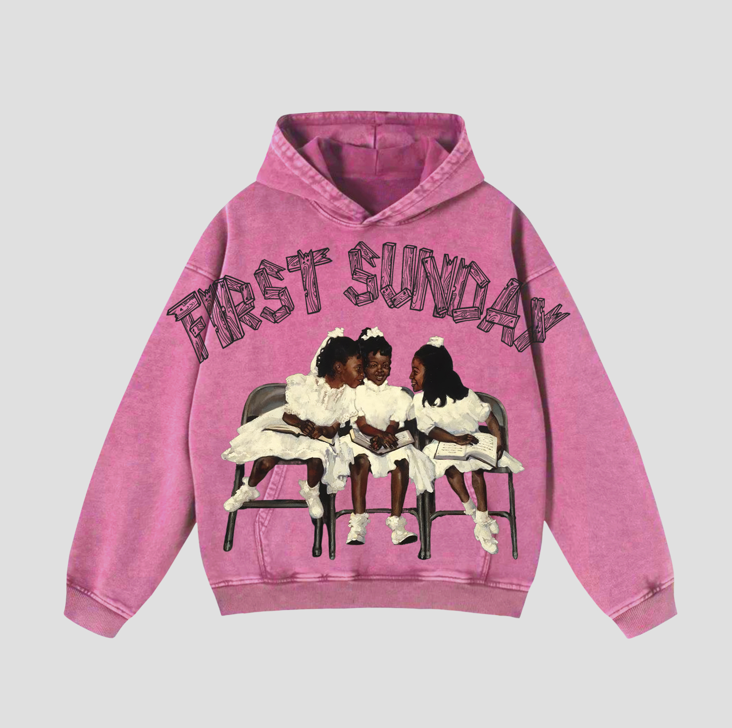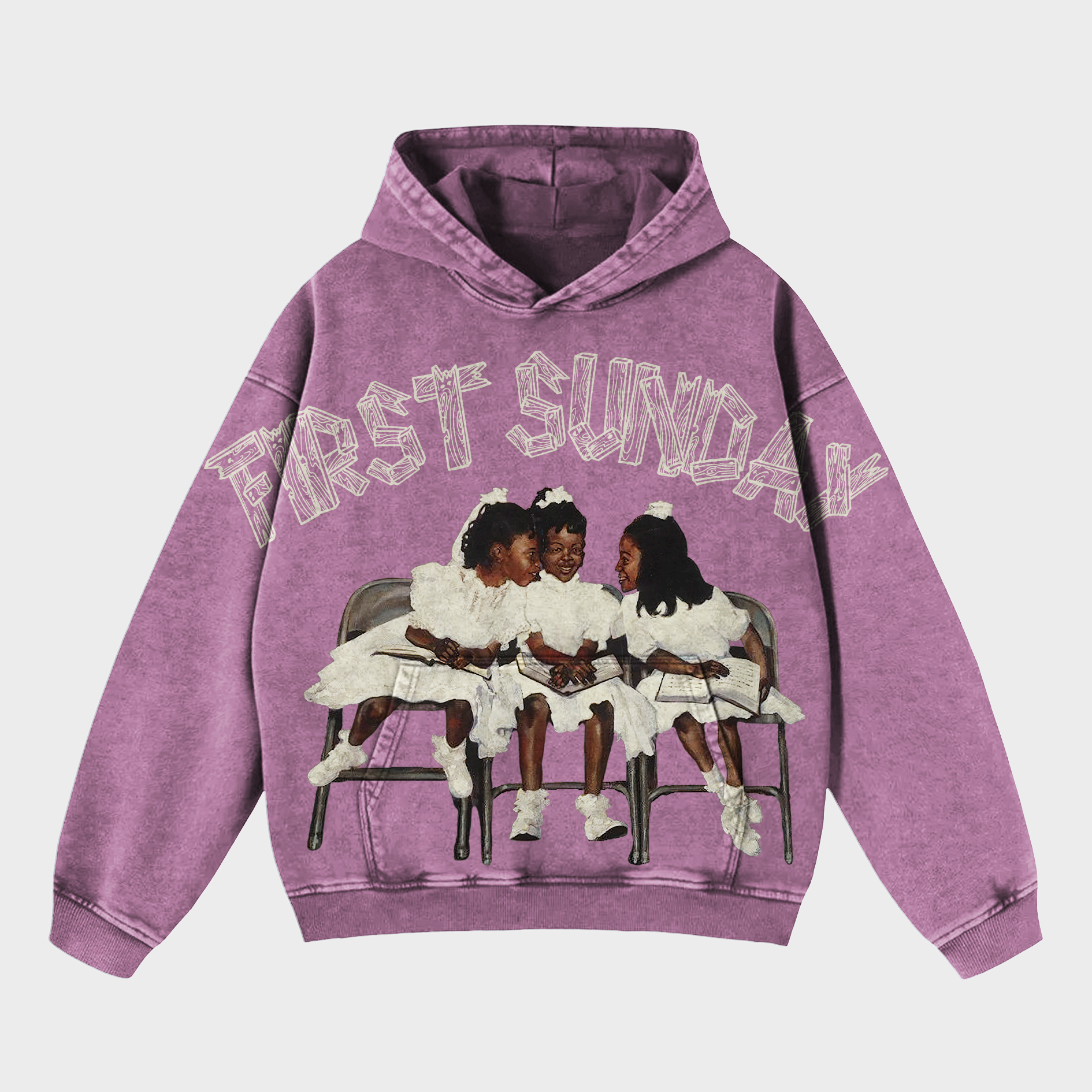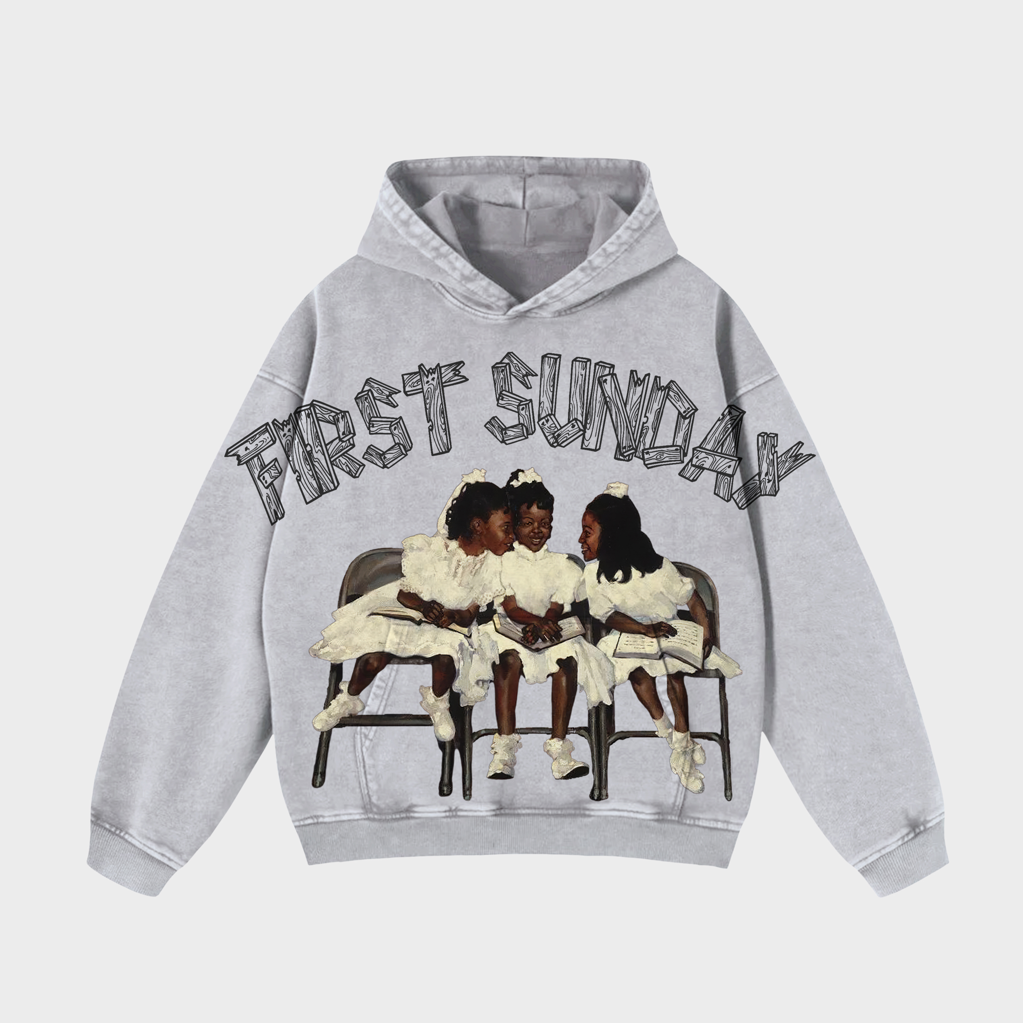Vintage First Sunday Faith Graphic Acid Washed Oversized Hoodie