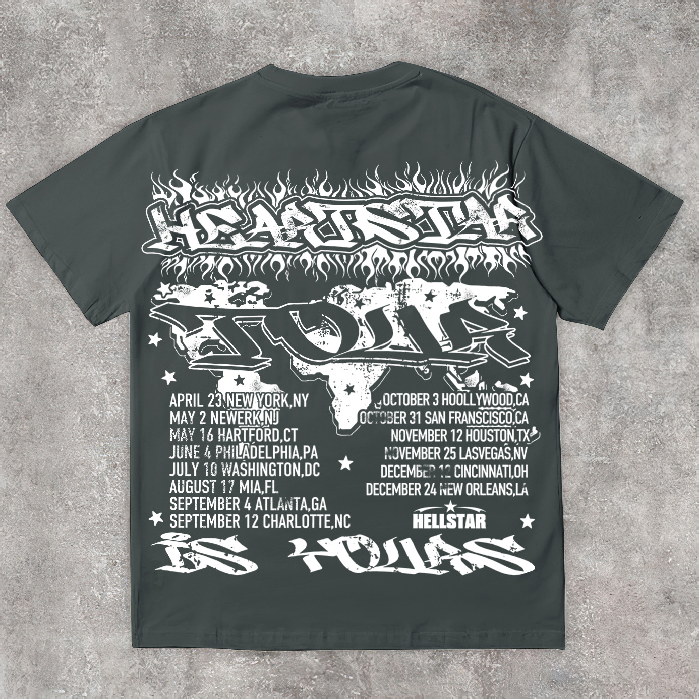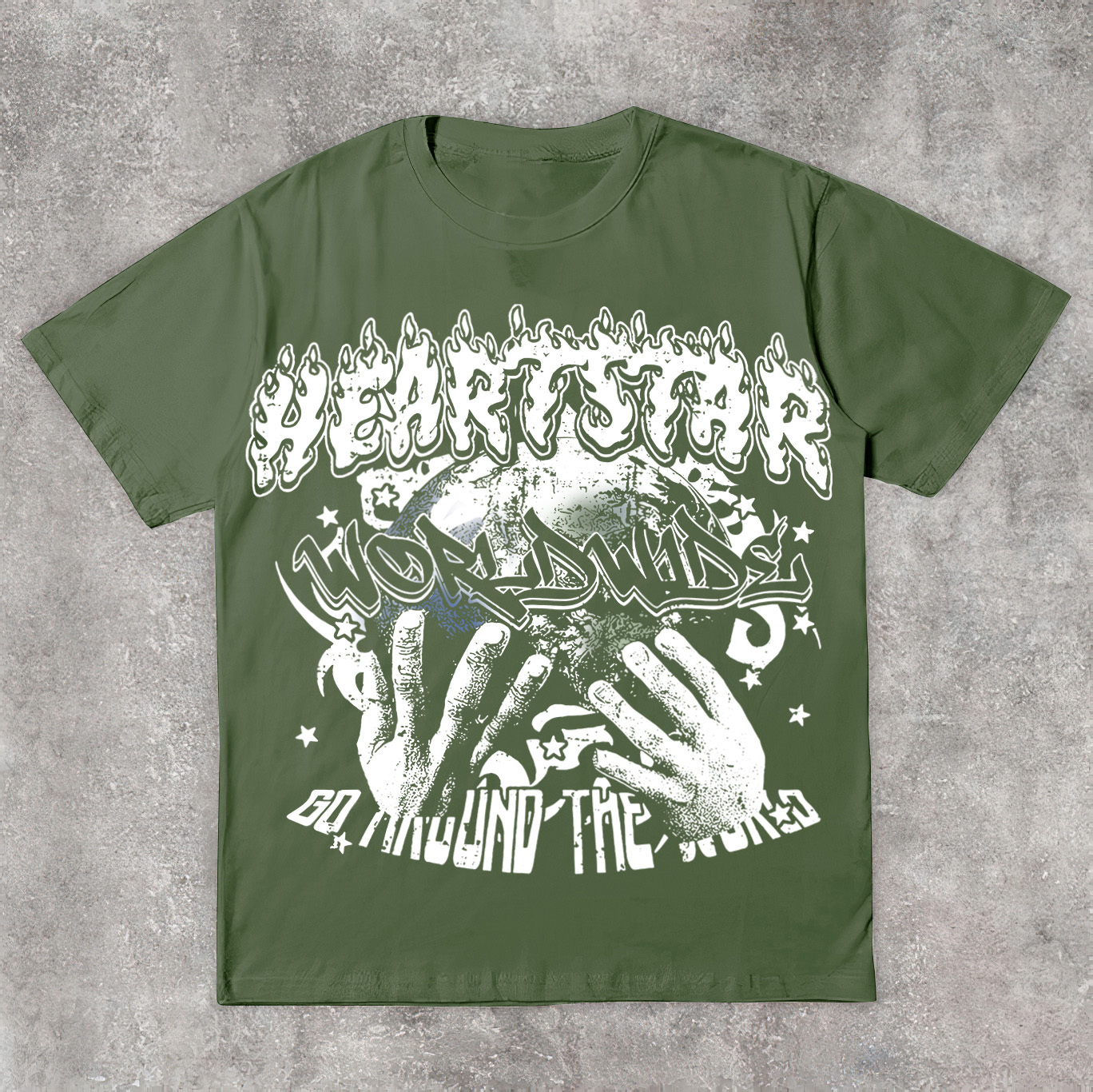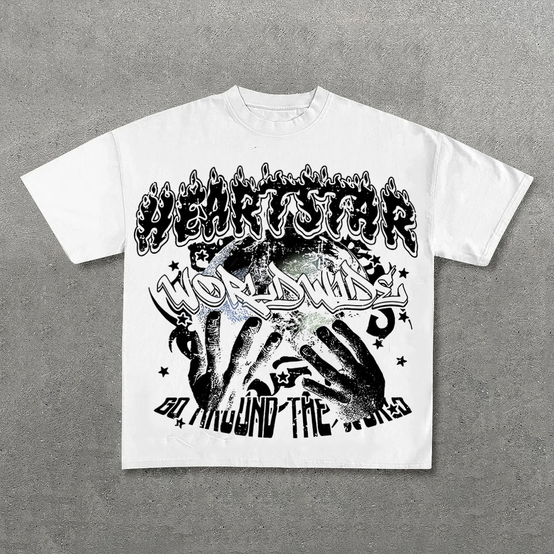 Vintage Heart Star Worldwide Print Graphic Cotton T-Shirt