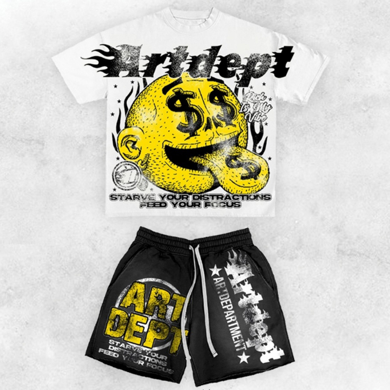 Vintage Hellstar Art Dept Graphic T-Shirt And Mesh Shorts Co-Ord T-Shirt Set