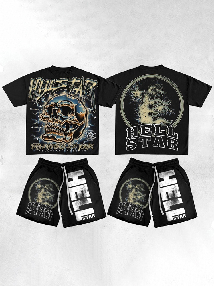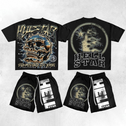 Vintage Hellstar Dept Skull Graphic T-Shirt And Mesh Shorts Co-Ord T-Shirt Set
