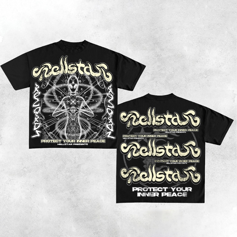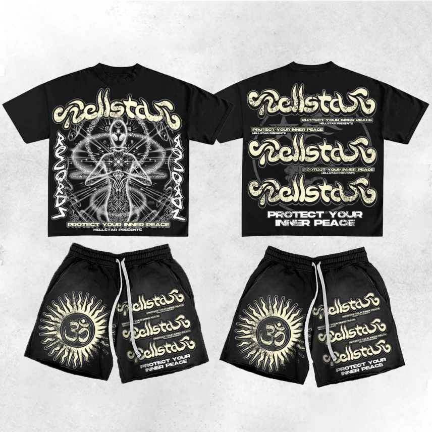 Vintage Hellstar Protect Your Inner Peace Graphic T-Shirt And Mesh Shorts Co-Ord T-Shirt Set