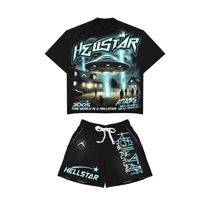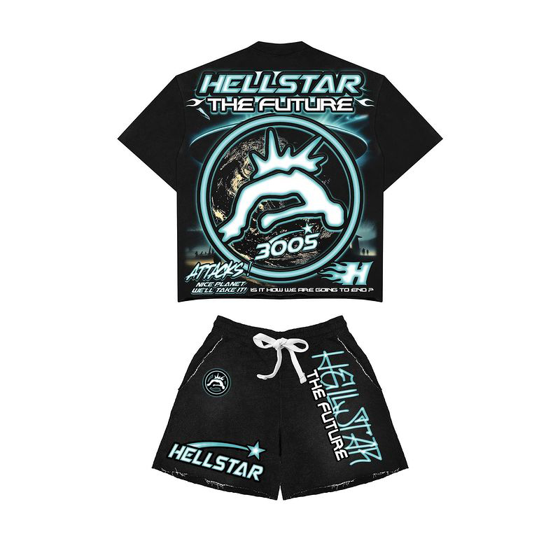 Vintage Hellstar The Future Spaceship Graphic T-Shirt And Shorts Co-Ord T-Shirt Set