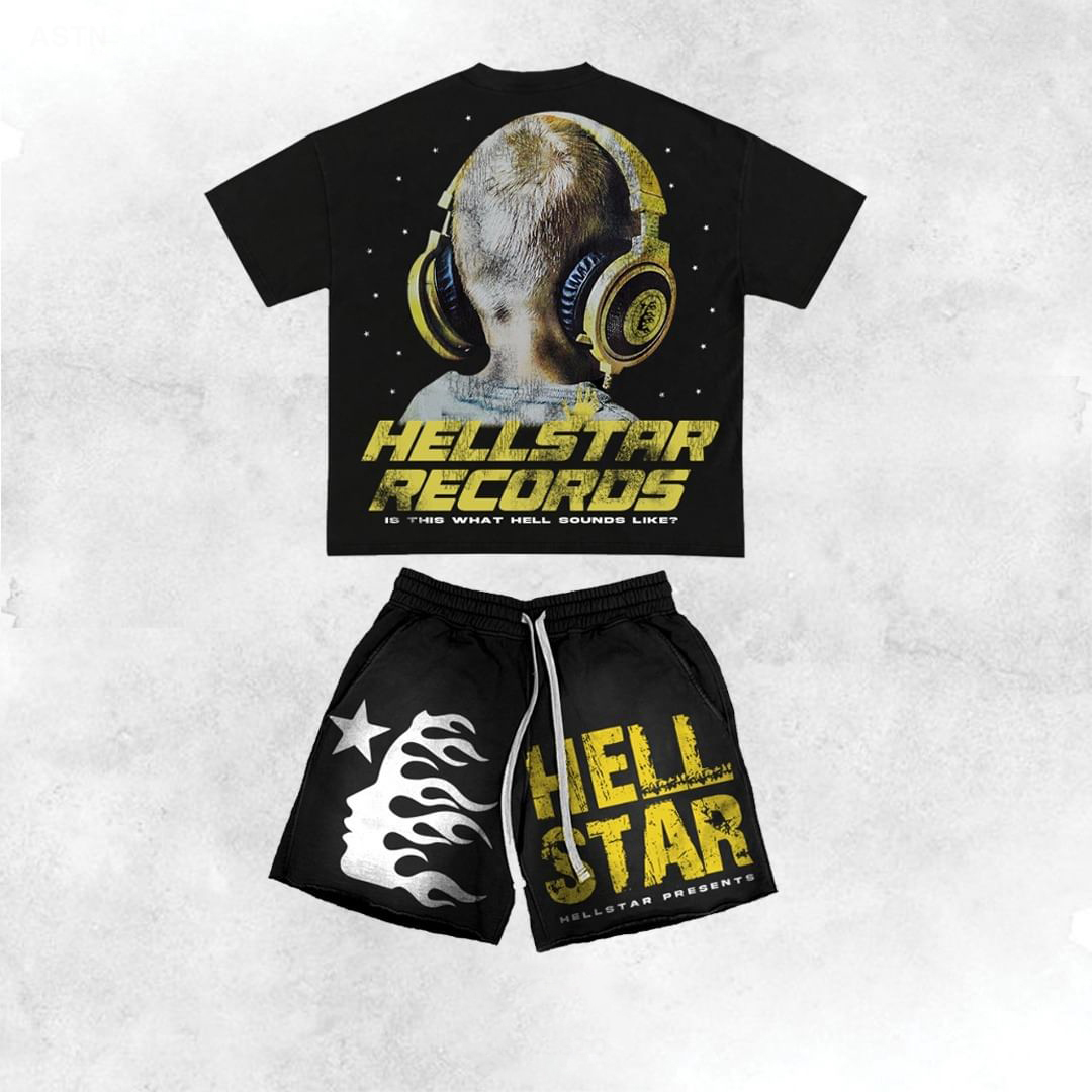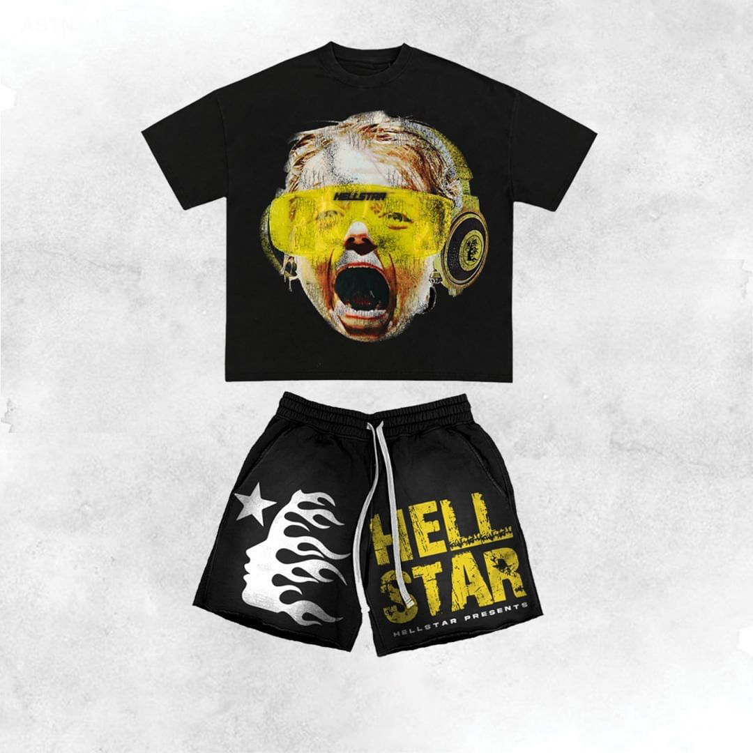 Vintage Hellstar With Crying Baby Graphic T-Shirt And Sweat Shorts Co-Ord T-Shirt Set