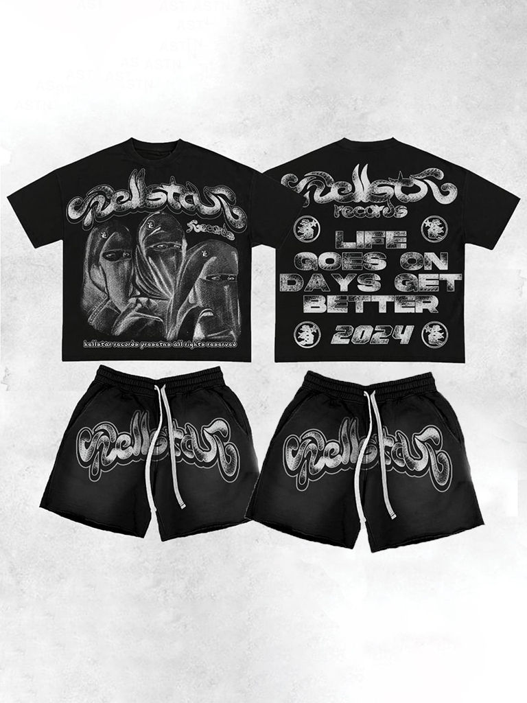 Vintage Hellstar With Life Goes On Days Get Better Graphic T-Shirt And Sweat Shorts Co-Ord T-Shirt Set