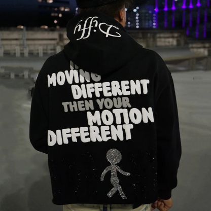 Vintage Motion Different Graphic Oversized Pullover Hoodie