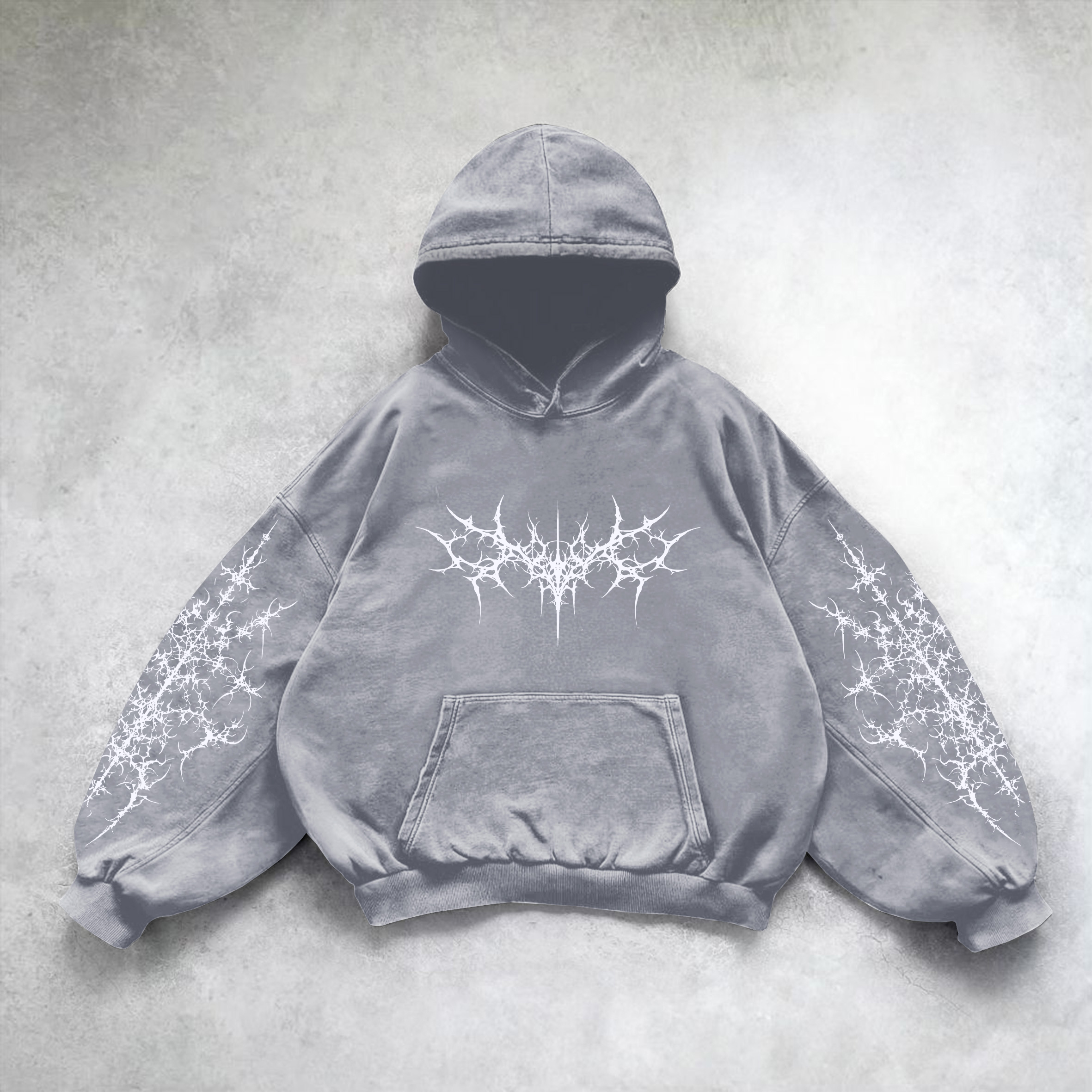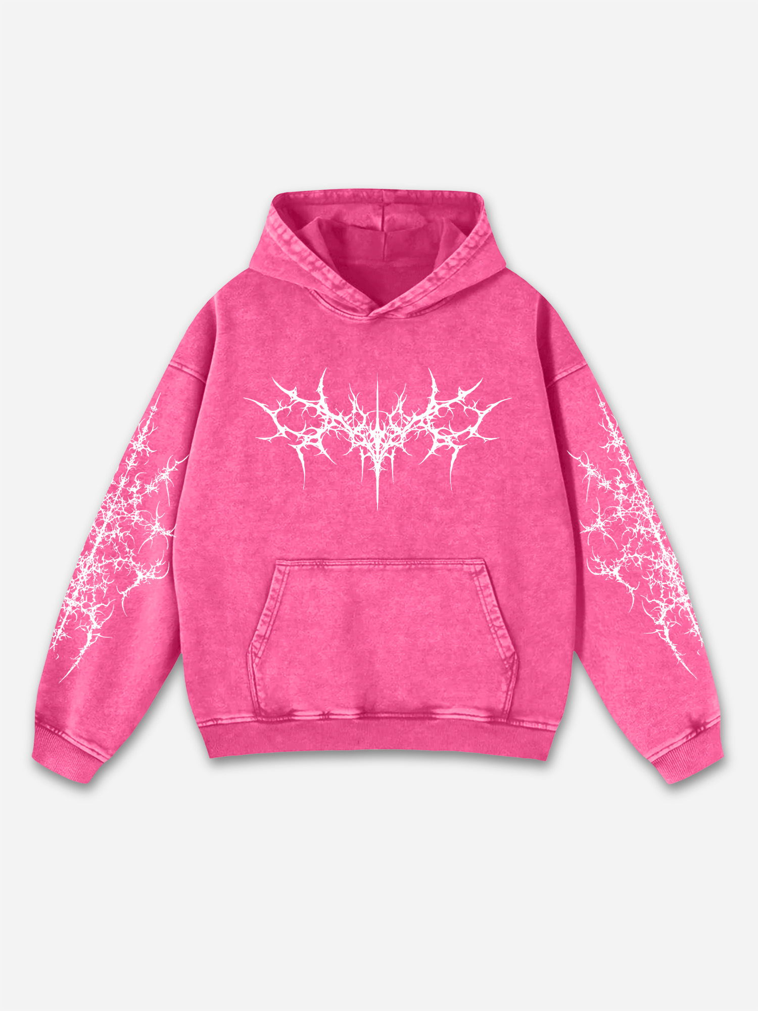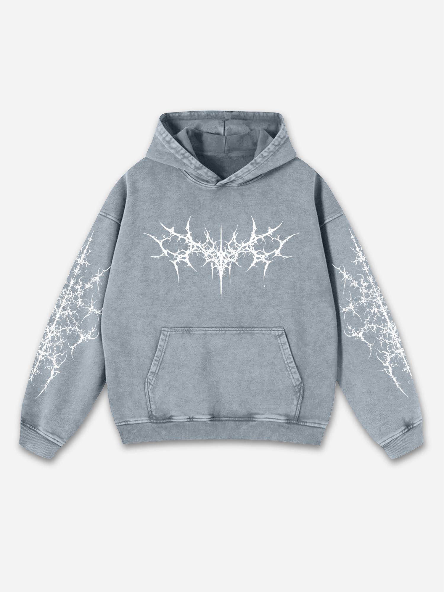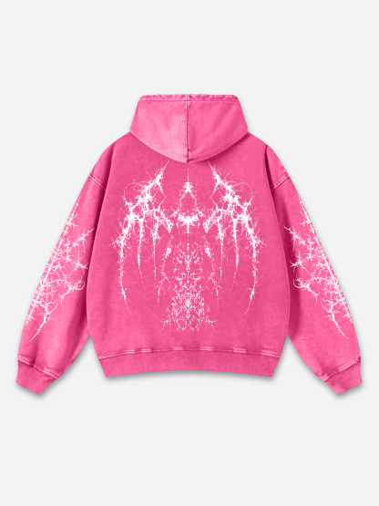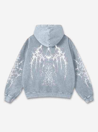 Vintage Pattern Print Acid Washed Oversized Hoodie