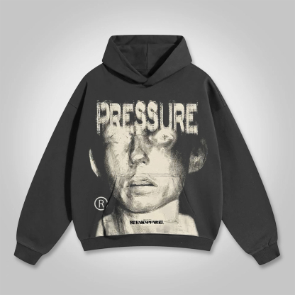 Vintage Pressure Face Graphic Print Fleece Pullover Hoodie