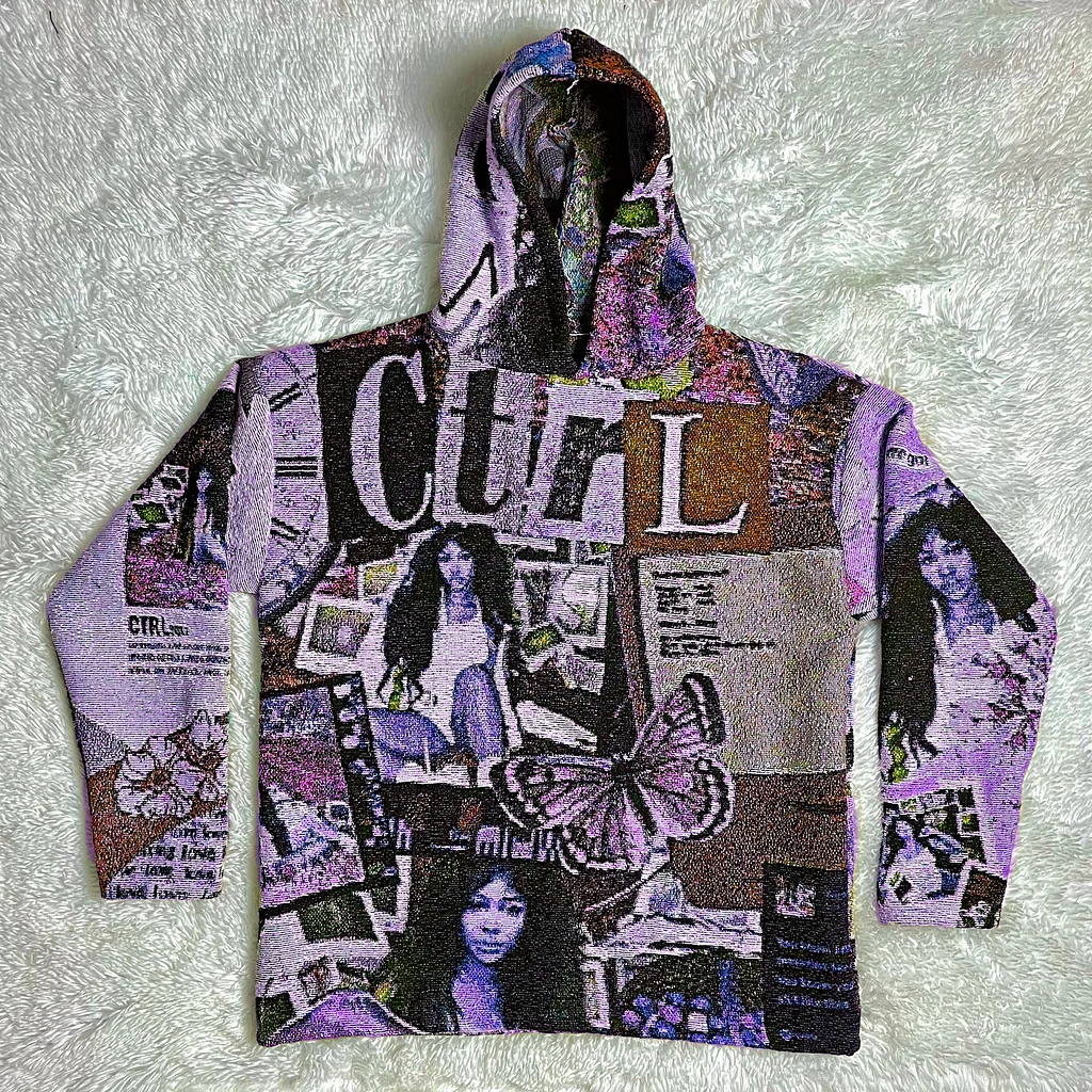 Y2k Vintage Saz Ctrl Graphic Print Tapestry Pullover Hoodie