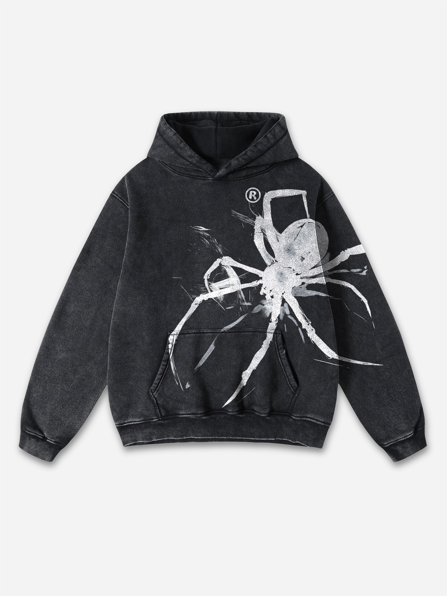 Vintage Spider Graphic Acid Washed Oversized Hoodie