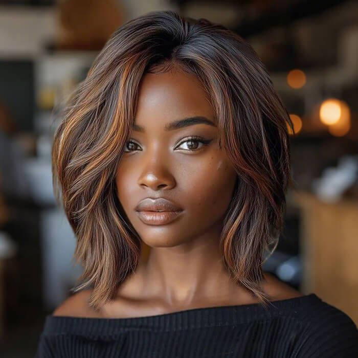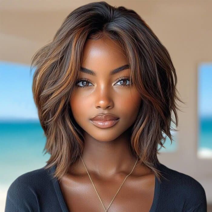 Wear and Go Wigs Glueless Layered Golden Brown Bob Wigs Pre Cut Lace Human Hair Wigs