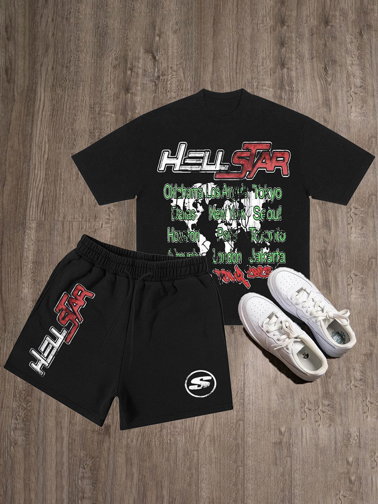 Y2k Hellstar Letters Graphic T-Shirt And Shorts Co-Ord T-Shirt Set