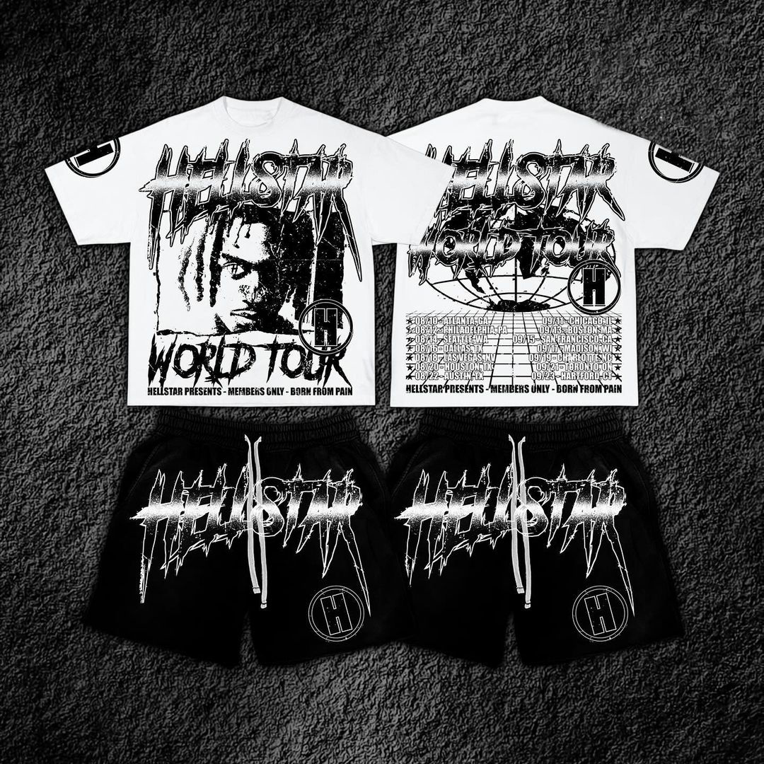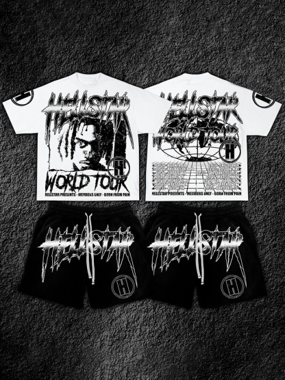 Y2k Hellstar With World Tour Graphic T-Shirt And Mesh Shorts Co-Ord T-Shirt Set