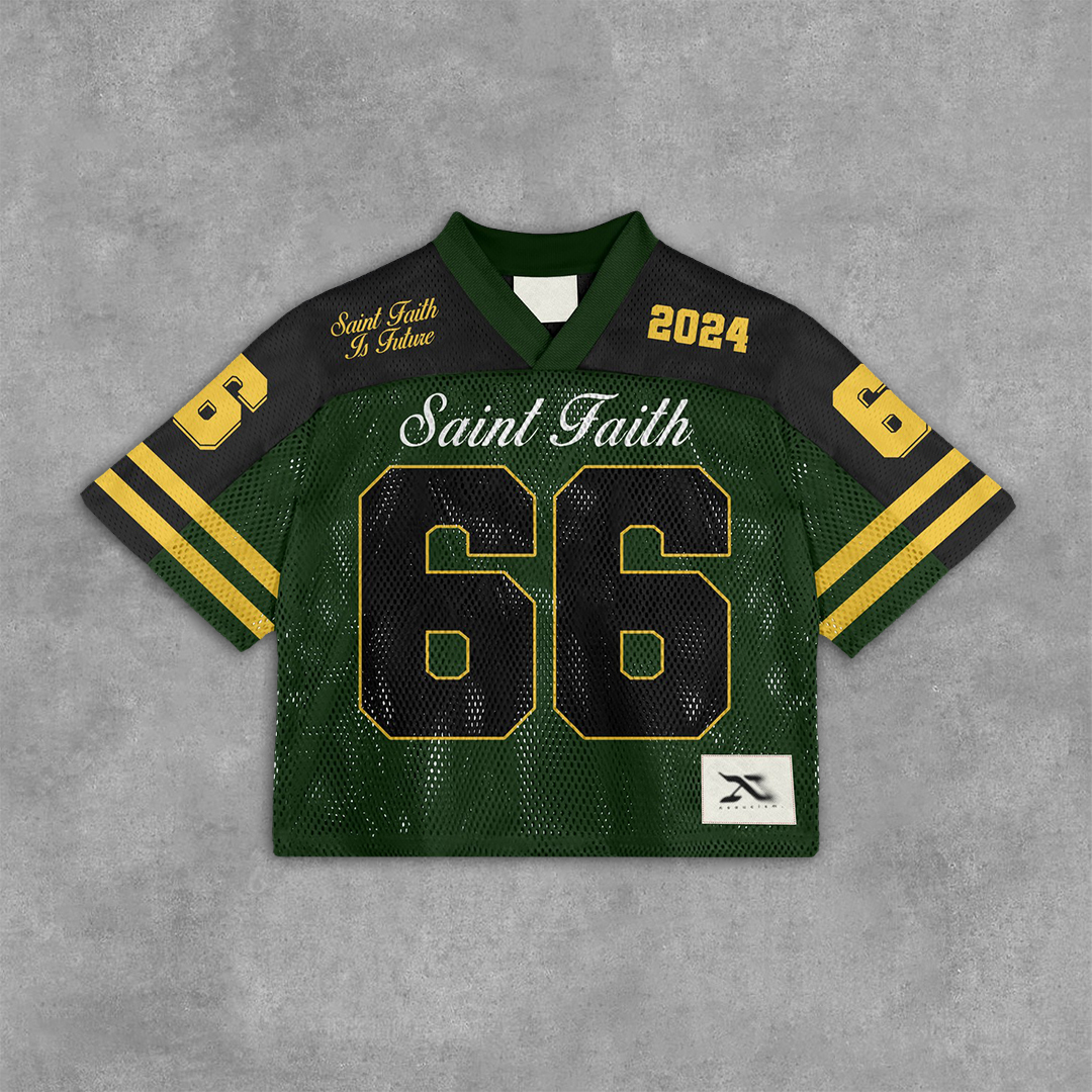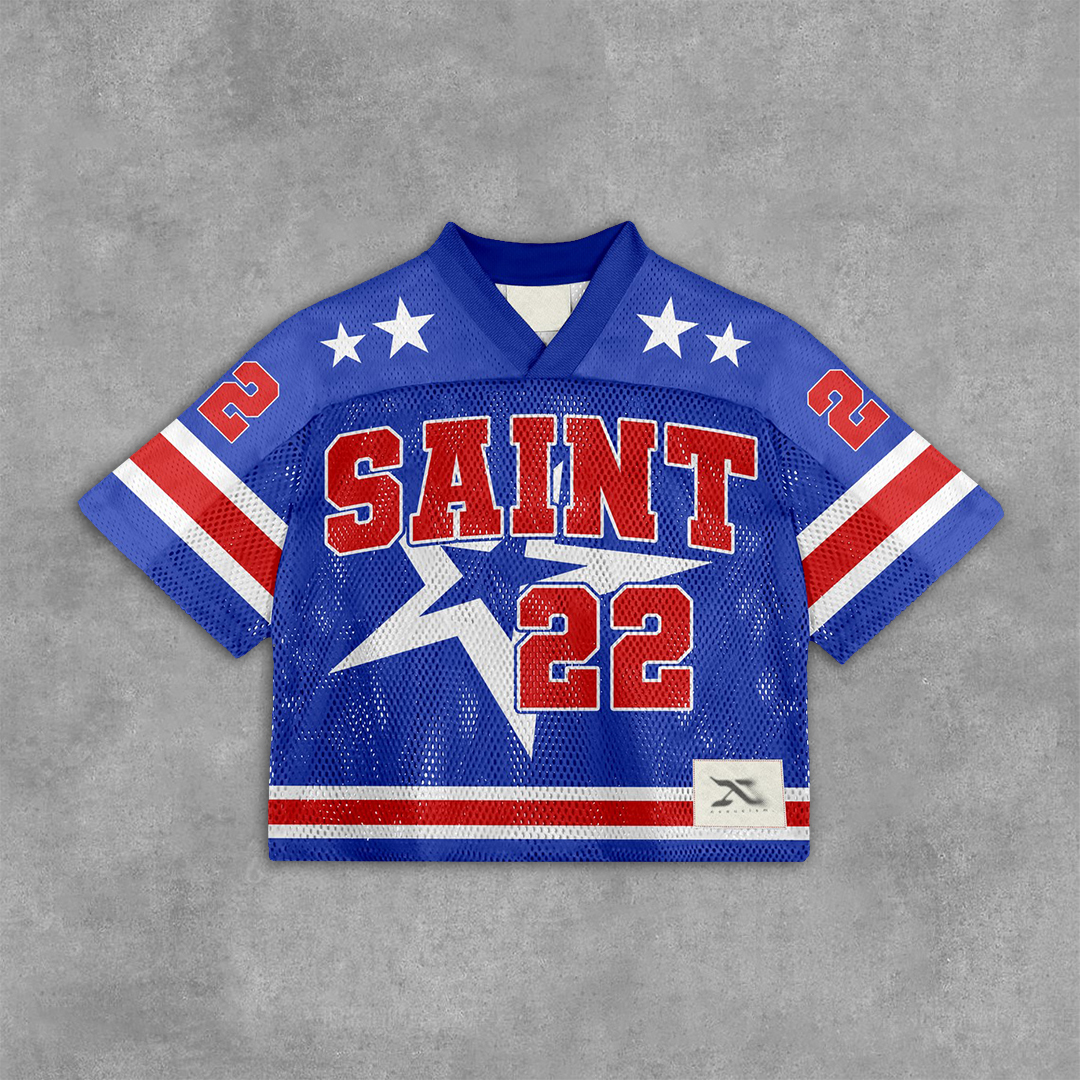Vintage Saint Faith No 22 Graphics Blokecore Blokette Football V-Neck T-Shirt