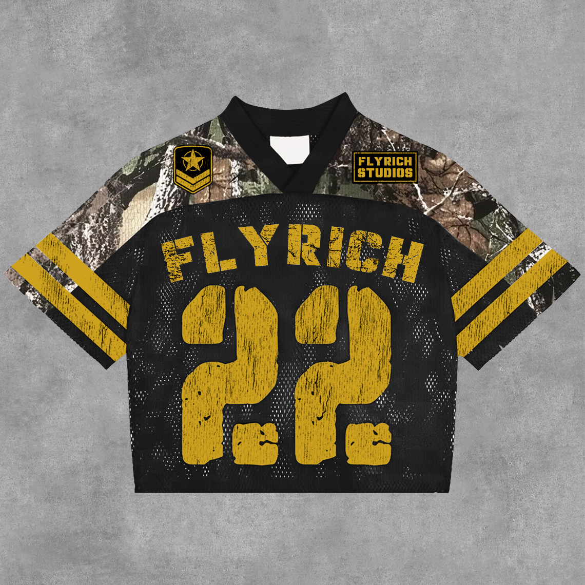 Vintage Fly Get Rich No 22 In Red Graphics Blokecore Blokette Football V-Neck T-Shirt