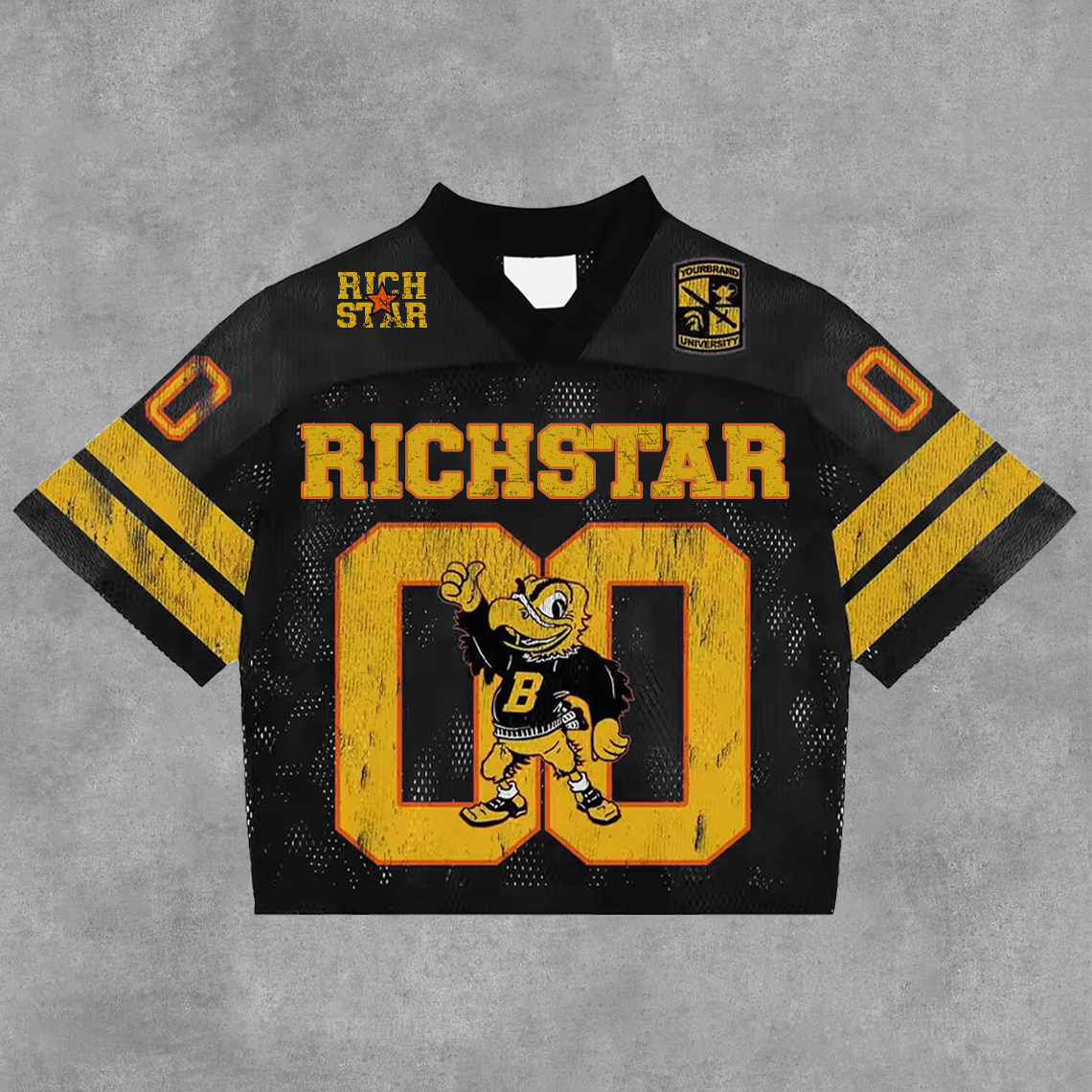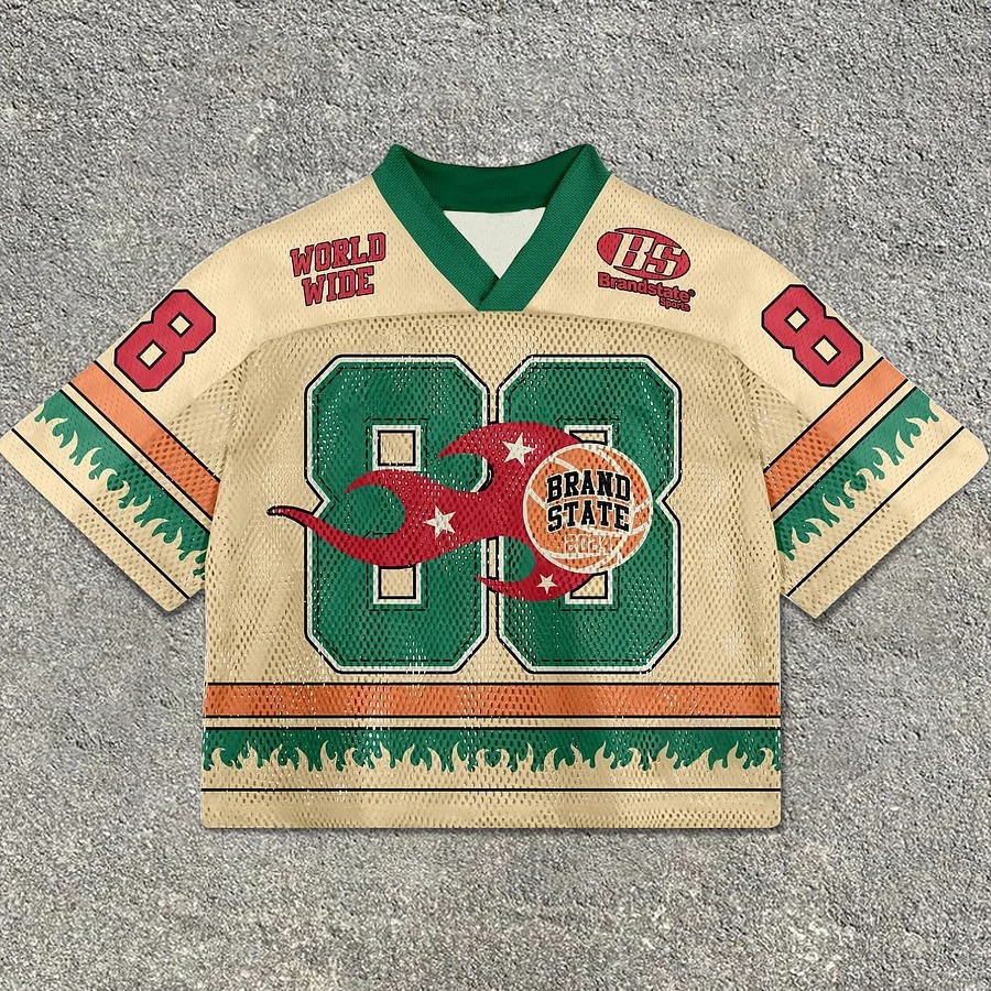 Vintage Rich Star NO.88 Graphics Blokecore Blokette Football V-neck T-Shirt