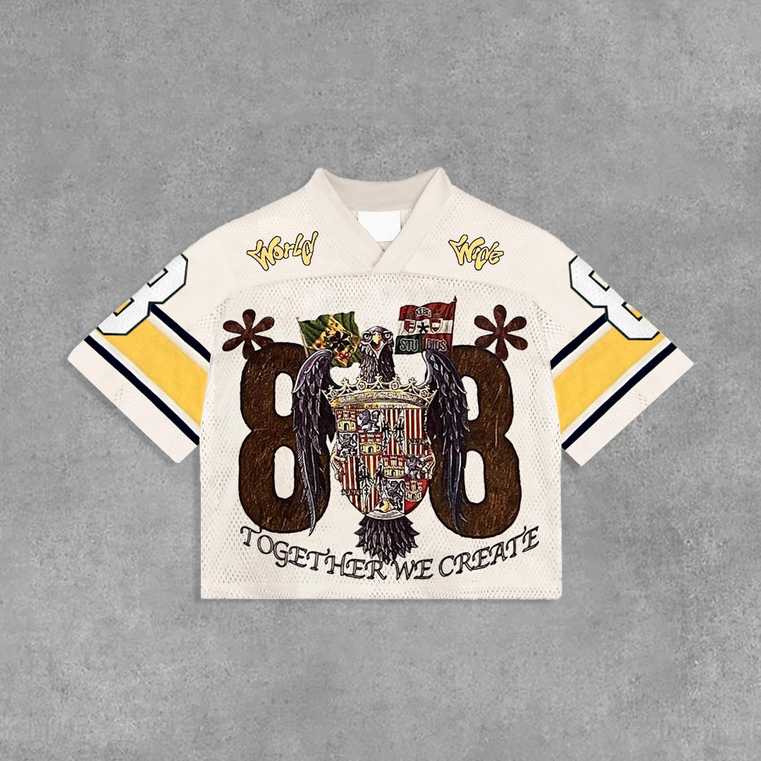 Vintage Together We Create Unity No 88 Graphic Blokecore Blokette Football V-Neck T-Shirt