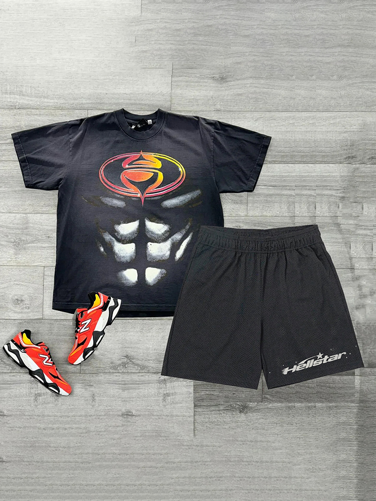 Abs T-Shirt Mesh Shorts Two-Piece Set