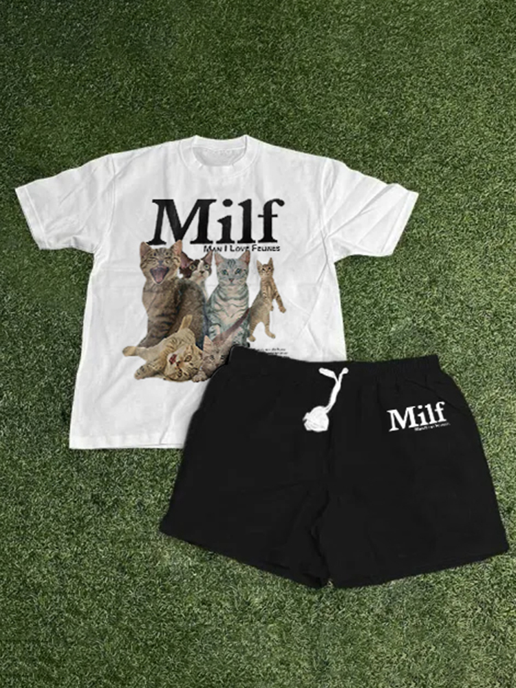 ??MAN I LOVE FELINES?? T-Shirt Shorts Two-Piece Set