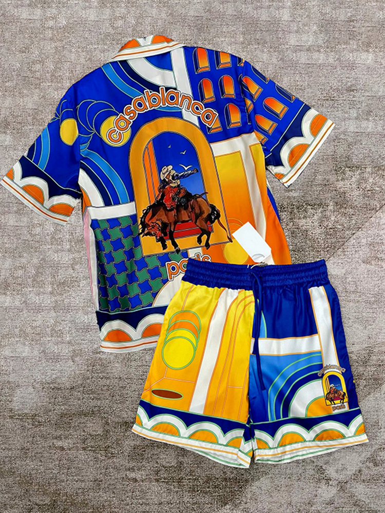 Retro Casa Retro Cowboy Print Street Shirt And Shorts Co-ord
