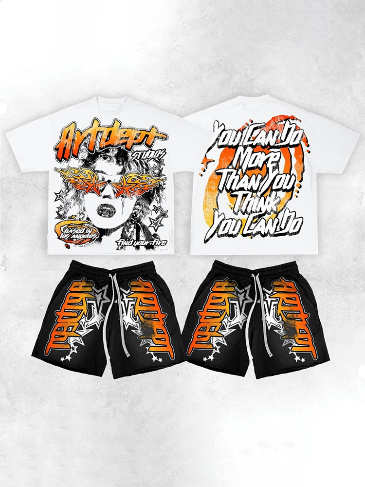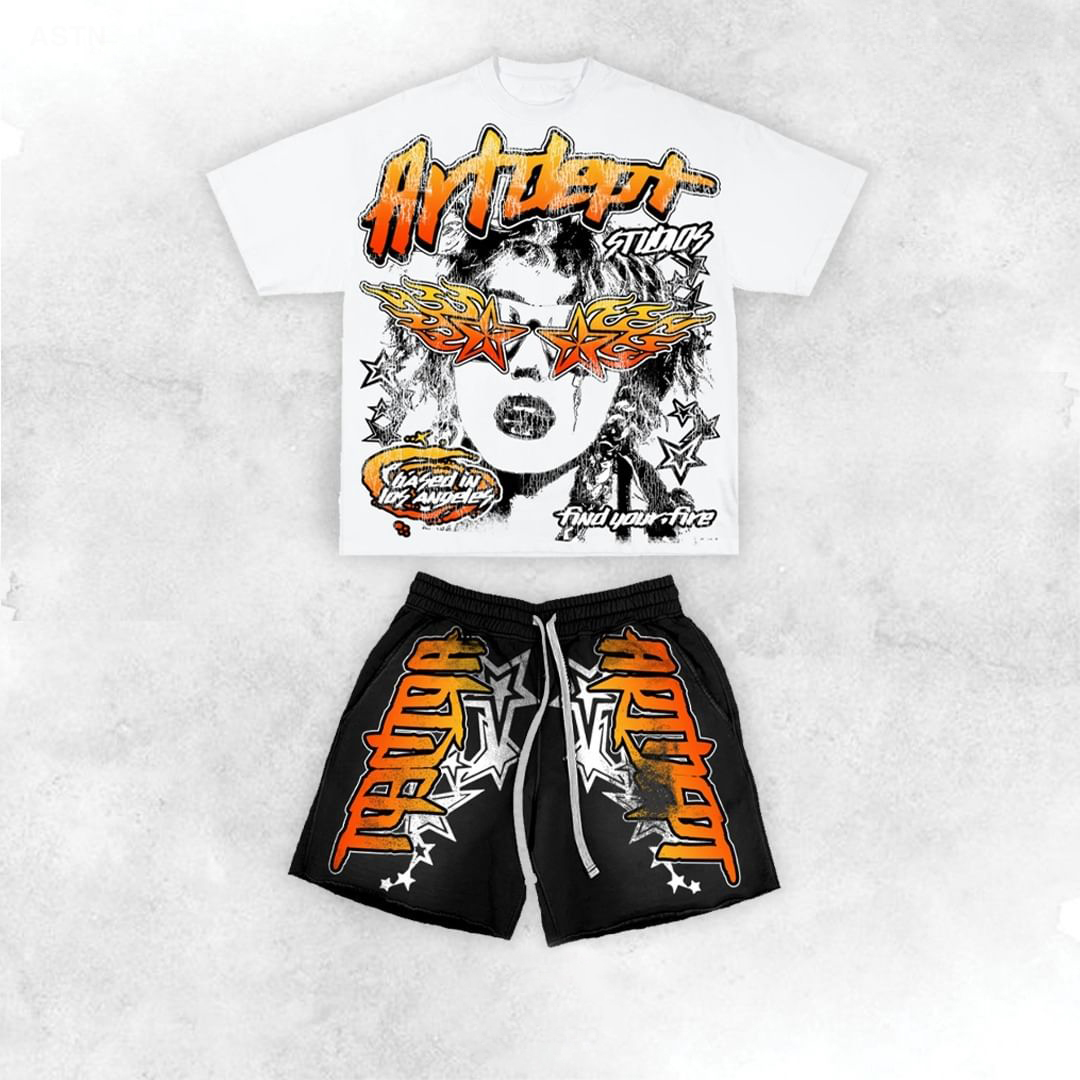 Vintage Art Dept With Lady Graphic T-Shirt And Sweat Shorts Co-Ord T-Shirt Set