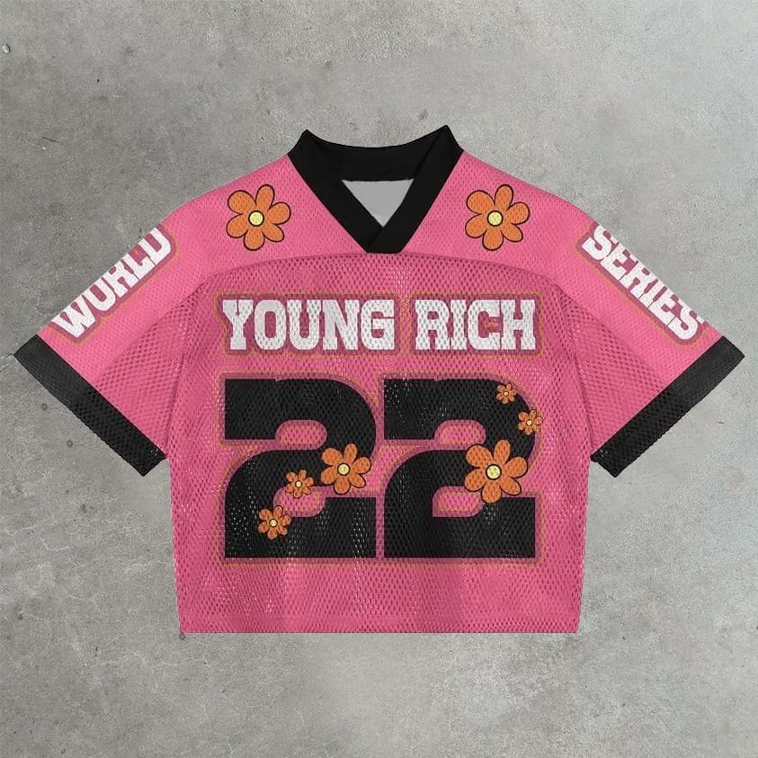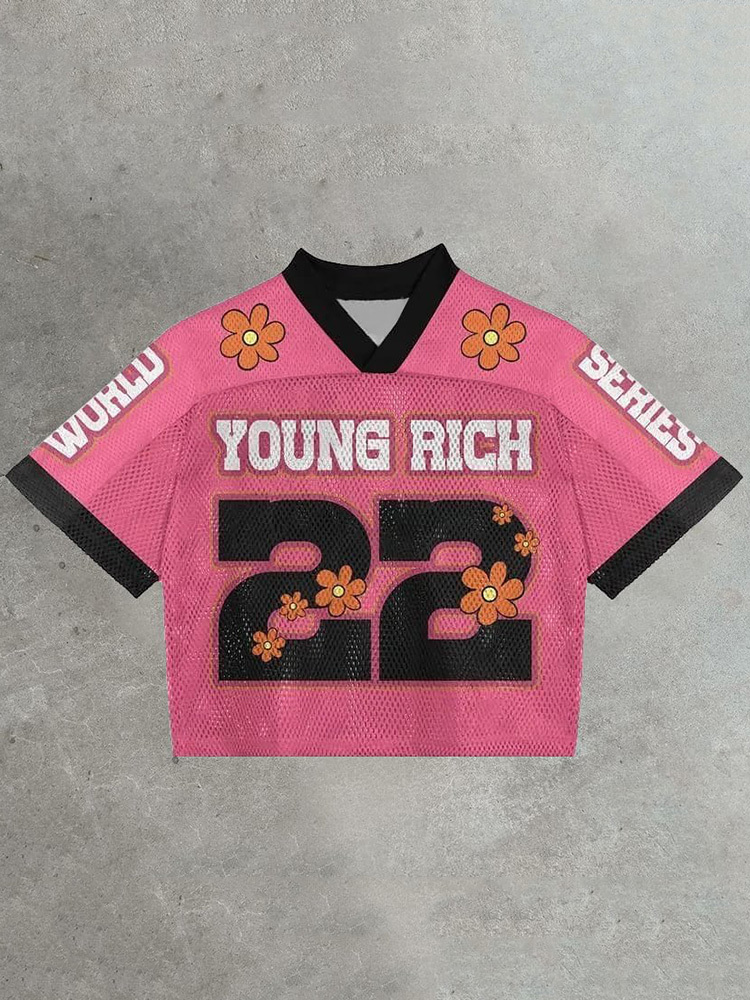 Vintage Daisy Young Rich Graphics Printed Football V-Neck T-Shirt