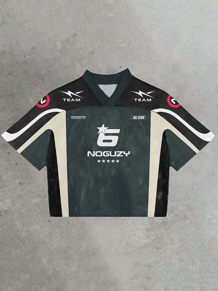 Vintage Lucky 6 Graphics Printed Football V-Neck T-Shirt