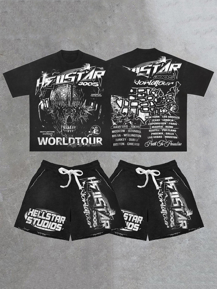 Vintage Path To The Paradise Graphic T-shirt And Shorts Co-ord T-shirt Set